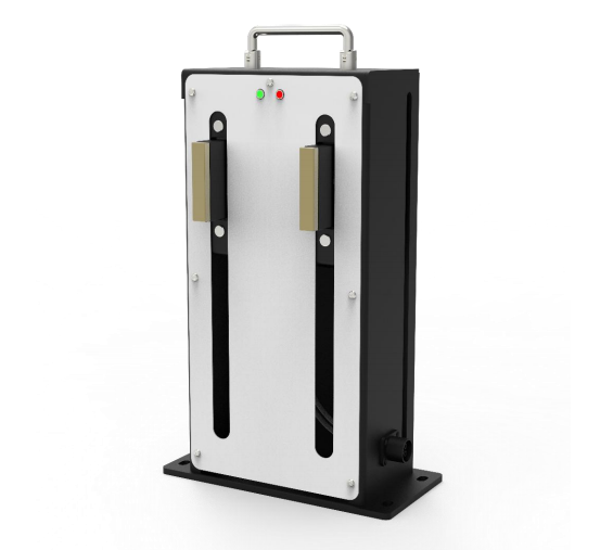 CHG-4820G是一款专为移动机器人设计的接驳式充电桩,采用弹性接触式对接技术,通过两个可回弹的充电电极实现稳定可靠的自动充电。该产品充电中心点离地间隙可在105mm至285mm之间连续调节,能够灵活适配不同高度的车型需求,其±50mm的水平偏移容差和±5°的角度偏移容差确保了接驳过程的高容错性。