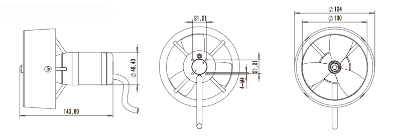 3.型号描述:螺旋桨直径为100mm, 推力约146N 的水下推进器 | 18.导流罩材质: PC |