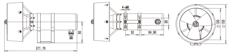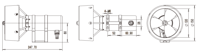 T120-250-300-STS-ROV-El:28.1kgf(正向)16.8kgf(反向) | 有安装座的推进器重量: |