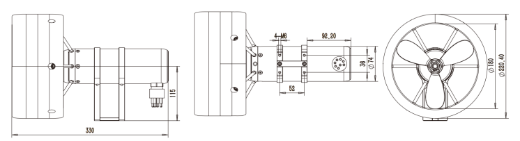3.型号描述:螺旋桨直径为180mm, 推力约500N的水下推进器 | 外径:10mm 长度:1.5m 内芯:2×1.5+3×2×0.5mm² 线缆定义:CAN/PWM/RS485 (定义详情请联系我司获取) |