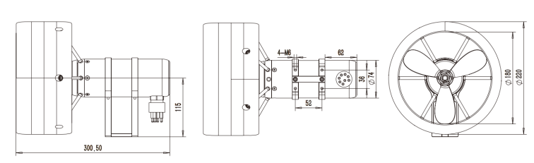 T180-500-300-STS-ROV-EI:54.4kgf (正向) 53.9kgf (反向) | 含安装座推进器重量: |