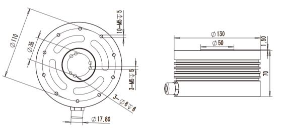 13.角度范围:360° | 30.线缆规格:外径:7mm 长度:可定制内芯:2x18AWG+4x0.2 |